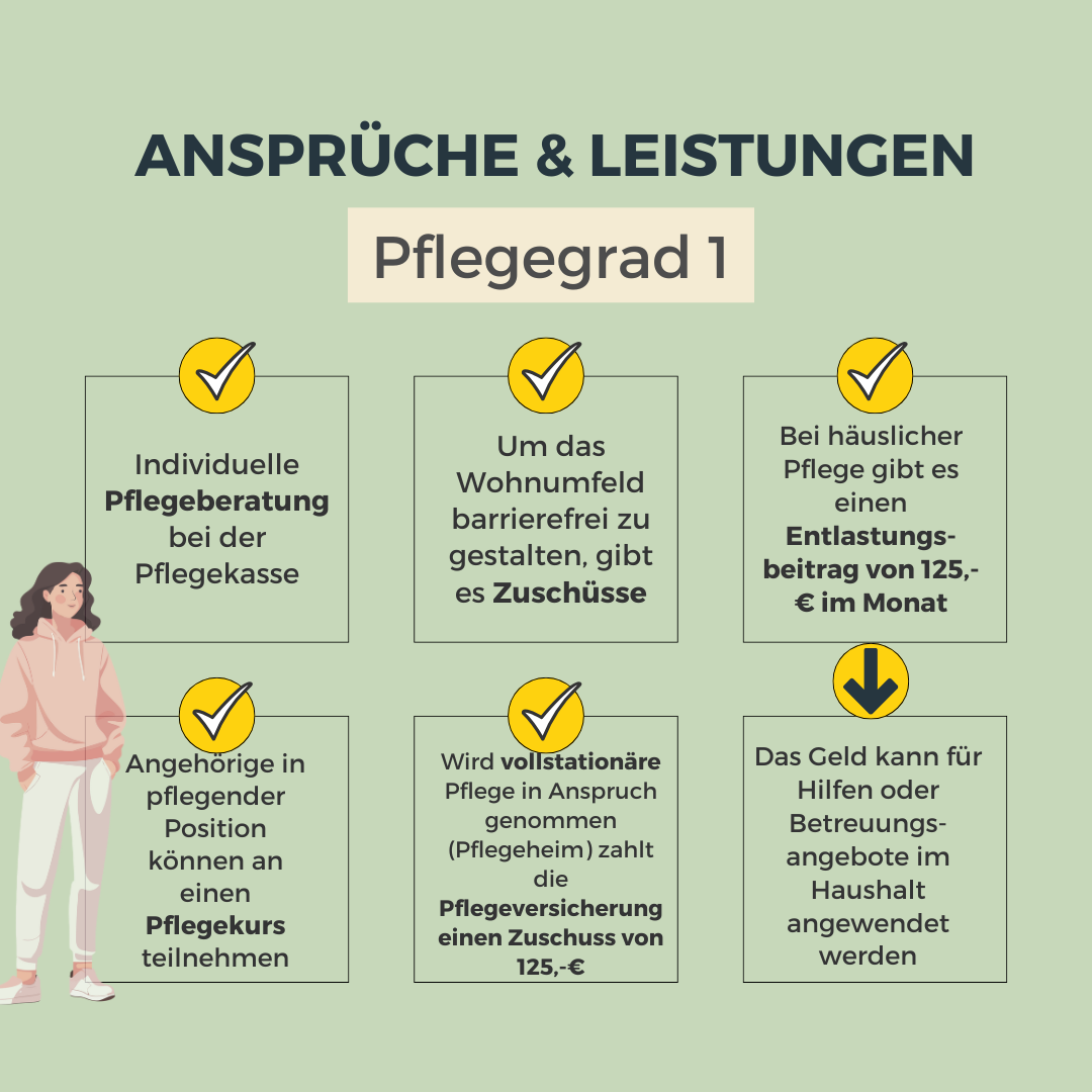 Vorraussetzungen und Ansprüche für den Pflegegrad 1